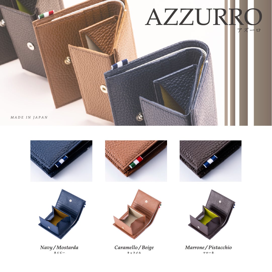 イタリア製の鮮やかな発色の牛革を使用し、日本国内で丁寧に製造した二つ折り財布です。《全7色》