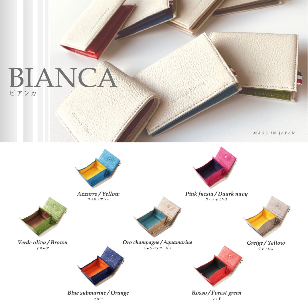 《Bianca》二つ折り財布【コバルト】イタリアンレザーAzzurro/Yellow 表革:ウォームホワイト 内革:コバルトブルー 裏布:イエロー